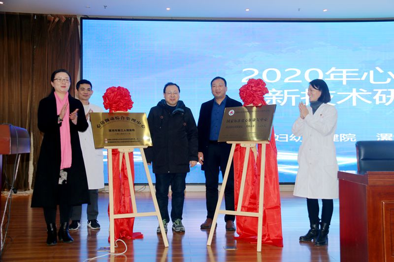 漯河市妇幼保健院院长杨轶、王东伟主任、丁红运主任、赵森院长为“国家标准化心脏康复中心”及“心房颤动综合管理中心”揭牌。
