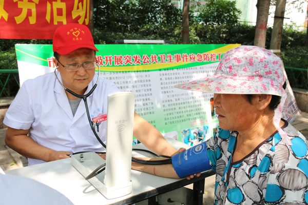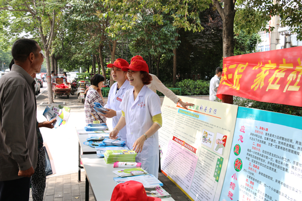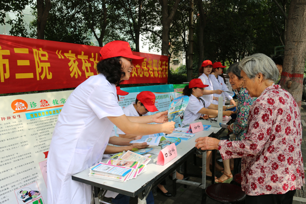 七一前夕,为纪念中国共产党成立94周年,进一步践行“三严三实”活动,继承和发扬党的优良传统,市三院于6月26日上午9点,在工会主席王晓丽的带领下抽调妇产科主任柴喜荣、口腔科主任薛发义、肾病科主任孟国正、内科副主任龚杏月四位资深主任医师在院门口开展义诊咨询服务活动,同时近十名青年党员志愿者也积极融入此次活动。