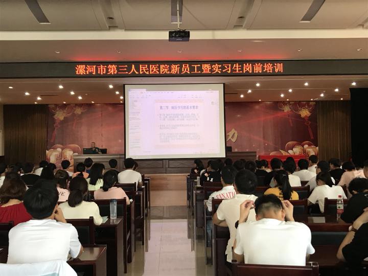 为进一步加强对新员工及实习生的规范化管理,使其更快更好服务临床,及早投入临床一线工作,保证医疗安全。近日,我院对2019年新招聘员工及临床实习生80余人进行岗前...为进一步加强对新员工及实习生的规范化管理,使其更快更好服务临床,及早投入临床一线工作,保证医疗安全。近日,我院对2019年新招聘员工及临床实习生80余人进行岗前培训。