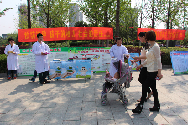 4月25日是”全国预防接种日“,市三院组织医护人员走上街头进行宣传活动,倡导”预防接种过、孩子的权力、社会的责任“!