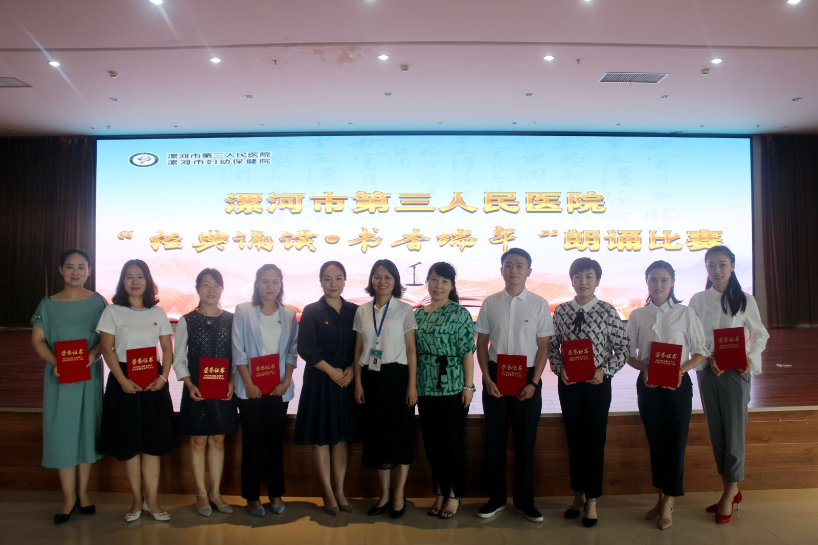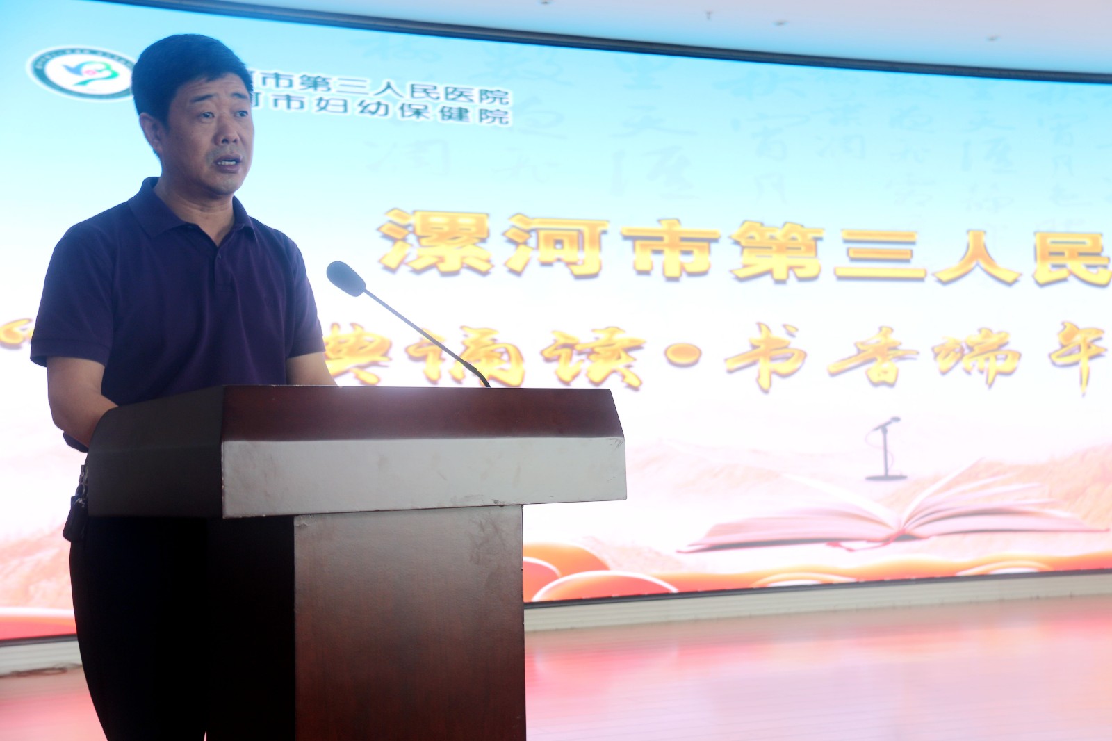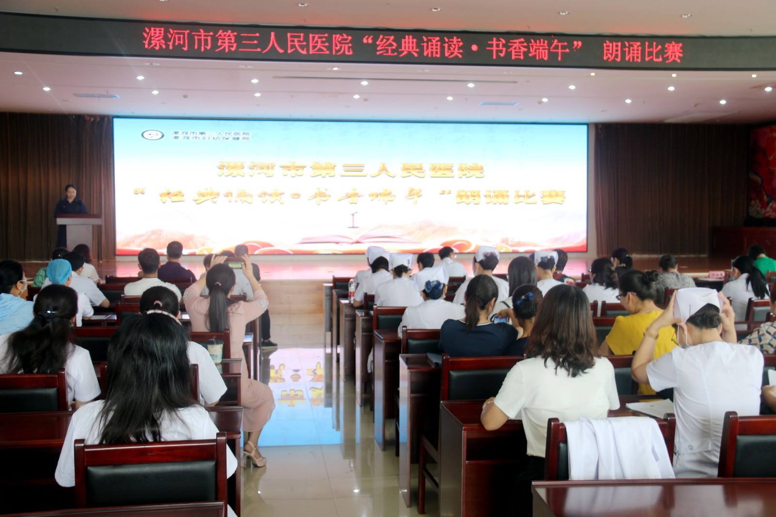 为弘扬民族优秀文化,传承中华文明,营造浓厚的读书学习氛围,6月19日下午,漯河市三院举办了“经典诵读 书香端午”朗诵比赛。市三院党委书记王建立、副院长彭定宏、副院长杨群顶、工会主席王晓丽出席本次活动。