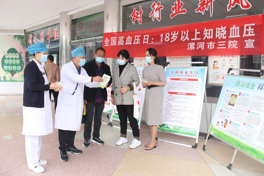 为了更好地开展“全国高血压日”主题宣传活动,漯河市三院在院内设立宣传展板、发放高血压科普单页、现场进行宣教等方式让来院患者进一步了解自己的血压及控制目标和健康生活习惯。通过此次活动,提高了大家对高血压的防控意识及知晓率。