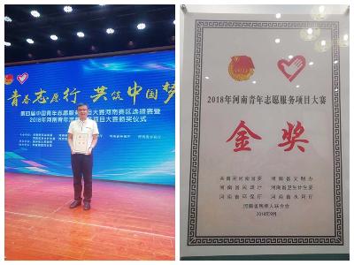 9月12日,第四届中国青年志愿服务项目大赛河南赛区选拔中,在全省18个地市的135个志愿服务项目12个类别中,我院通过激烈角逐荣获省级金奖,随后我院又积极申报全国大赛,并在团市委支持下成功入围。