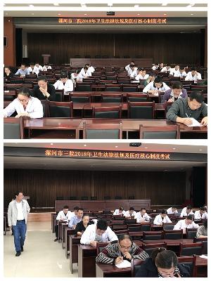 10月30日下午,市三院在三楼会议室组织临床医师进行“2018年卫生法律法规及医疗核心制度”考试。为保证科室人员正常值班,笔试分两场进行。考试内容为《执业医师法...10月30日下午,市三院在三楼会议室组织临床医师进行“2018年卫生法律法规及医疗核心制度”考试。为保证科室人员正常值班,笔试分两场进行。考试内容为《执业医师法》、《医疗质量管理办法》、《传染病防治法》、《医疗废物管理条例》、《母婴保健法》等卫生法律法规及“医疗核心制度”,每套试题由单选、多选及判断三种题型组成。通过此次笔试将评选出成绩优异的临床医师,组队表科室参加11月份的全院公开竞赛。