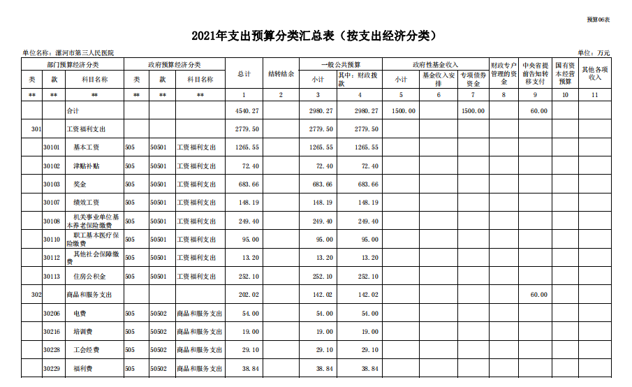 漯河市第三人民医院2021年一般公共预算收支预算 2980.27万元,政府性基金收支预算1500万元。与 2020年相比,一般公共预算收支预算增加182.41万元,增长6.12%,主要原因:根据人社局批复调整上浮年度薪级工资。政府性基金收支预算增加1500万元,增长100%,主要原因:2020年无政府性基金预算。