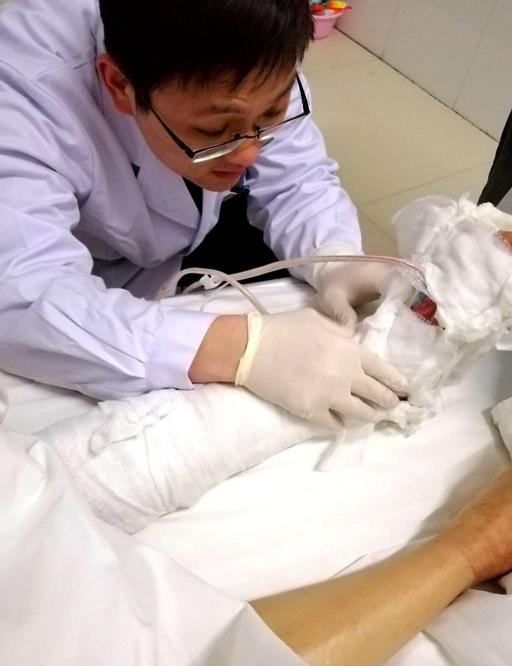 漯河市三院骨科医生万青红和高文博一起拼劲耐力,在手术台前一站就是6个多小时...病人于当日中午急诊入院,左足外踝骨折,第2、3、4、5趾骨骨折,足部皮肤严重缺失。