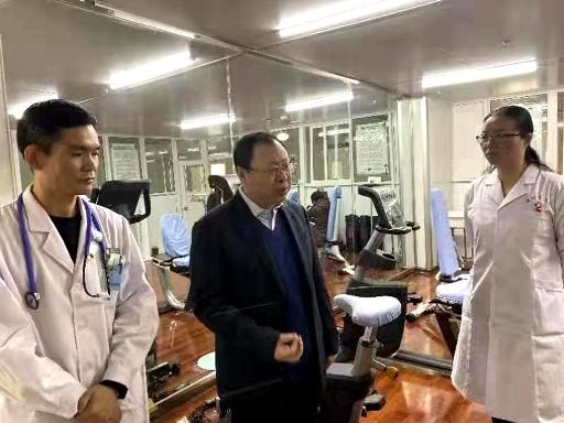 市三院院长杨轶、工会主席王晓丽和心脏康复科主任段继豪陪同王东伟教授来到心肺康复科及心内科病区,对康复设备、评估设备、运动设备、抢救设备、中心人员资质及五大处方的落实情况,以及患者的病历及随访的开展情况等方面进行现场指导。